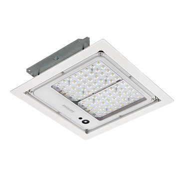 Under-canopy light, Штампований алюміній, Білий, Блок живлення (Увімк./Вимк.), 7380 lm, 48 W, 155 lm/W, 4000 K, (0.380, 0.380) SDCM <5, CRI70, Ротаційна симетрична середня для заправок, IP66 | Захист від проникнення пилу, стійкий до струменю води, IK08 | 5 Дж захищено від нищення, Клас безпеки I, Стандартний рівень захисту від перенапруги, Кабель на 3 полюси без штекера, Вставний з’єднувач на 5 полюсів